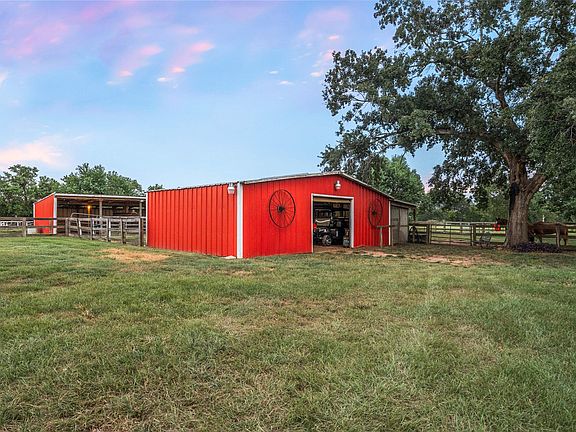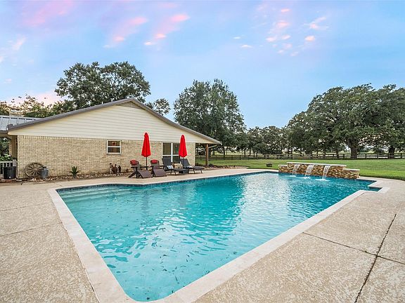 Discover the perfect blend of country living and modern convenience on this beautifully improved property in Hempstead. Ideally located along FM 359 with easy access to Hwy 6, 290, and Bryan/College Station, the property offers both privacy and convenience. The single-story home showcases a durable metal roof, French front doors with leaded glass, and spacious living areas with built-ins, a large dining room, and Corian countertops. Updates include a 4-year-old HVAC, resealed fireplace with painted interior, exterior doors, and Hardiplank siding. Outdoor living shines with a resurfaced pool featuring new coping, a waterfall fountain, cool deck, and pergola for shaded seating. Enjoy the new deck, added concrete, and French drains for peace of mind. The tract offers 5–6 pastures, sturdy fencing, and a classic red barn with covered storage, round pen, and night lights. A replaced well pump and tank, gutters, garage door, and shed add to the property’s value.