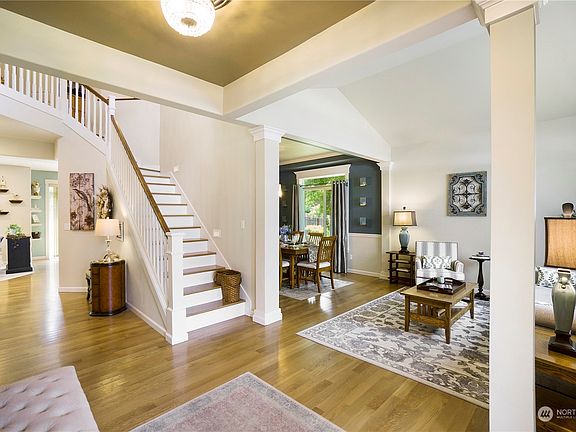 Welcome to your impeccably maintained, single-owner Maple Valley Oasis! Recent upgrades: Kitchen in 2023 (quartz countertops, tile backsplash, gas range with downdraft exhaust fan, and copper farmhouse sink), Trex deck in 2020, new 3" white oak floors and entry accent wall as well as new kitchen appliances, heat pump, and furnace in 2019. Downstairs features formal living/dining rooms, eat-in kitchen, powder room, and a family room and office separated by a two-sided gas fireplace. Upstairs you'll find the primary suite (5-piece bath and 2 walk-in closets), two more bedrooms, full hall bath, laundry, and a bonus room that could be a 4th bedroom! Beautifully landscaped front and back yards, 3-car garage, and lots of parking!
