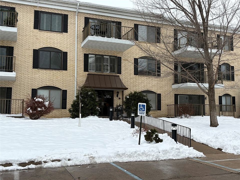 Looking for move in ready? Looking for updates? Looking to be in a secure, maintenance free environment? This is the unit for you! Ready to move in, this first floor unit is quietly situated at the end of the hall with up to date interior paint colors and window coverings! Updated with brand new bright and white kitchen with great storage and all new kitchen appliances too. Updates continue with updated baths and new primary suite carpet, plus newer furnace and water heater. Low maintenance with lawn care and snow removal of course, but doesn't an attached, heated garage sound good for the winter? You will also love the privacy of this rear patio off the great room, the large deck for extra big group entertaining right outside of your unit door, secured entry for piece of mind and great storage both inside the unit, especially the HUGE primary closet, and in the separate storage area in the lower level. Don't miss the in-unit laundry, paid internet and basic cable or the fun building activities including book club! Zero entry from garage level with elevator to this unit is an extra bonus! Great location near everything, but quietly tucked in off of First Avenue. This one is truly a must see unit! Not a 55+ building. Garage space is 38
