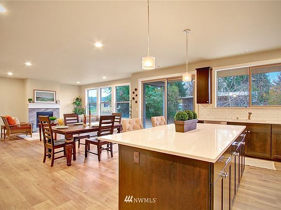 Sought after Main Level Living home on spacious private lot. JK Monarch Fine Homes present 2,568sq/ft w/ large 3 car garage. Offers formal dining room, home office and gourmet kitchen w/ slab counters, backsplash and eating space. Great room with gas tile surround FP w/ floating mantel and open concept living leading to outdoor entertaining area. Primary on main includes large 5 piece primary BA with walk in closet. Lower level includes large bonus room with access to outdoor patio, 2 additional bedrooms, full bath and laundry room. Front yard is fully landscaped.