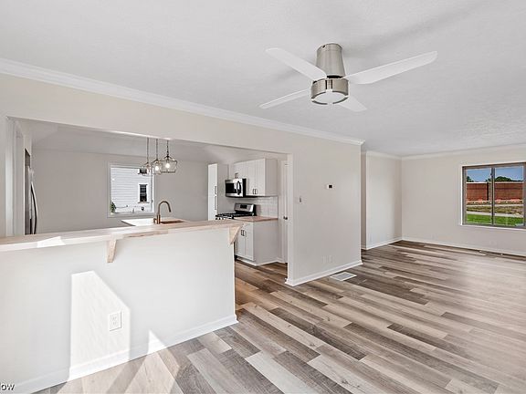 A must see home with a one of a kind kitchen and a 4 car block garage! Completely remodeled home just waiting for you to turn the key and move in. Upon entering you'll appreciate the easy maintenance LVT flooring that leads you to the jaw dropping kitchen featuring all new cabinets, butcher block counters, gold accents and stainless steel appliances. The perfectly placed island highlights the open floor plan with bar top sitting and flows into the dinning room / living room that features double glass doors to the exterior. There's an updated bathroom with a walk in shower to complete the first floor. Upstairs you'll find the master suite with a coved ceiling and impressive private bathroom. There's another two bedrooms and third floor attic access thats been finished and can be used for additional space. The exterior is where the magic happens with an extensive 30x40 block garage that was previously used to paint cars and is ready for anything you can dream up! This home has it all wit