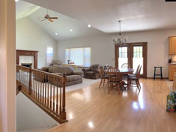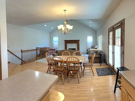 - Features include an upstairs master bedroom, large living room with dining area, kitchen and a center island for eating, small office, a gas fireplace