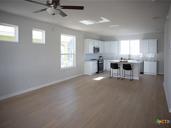 Modern simplicity meets classic comfort in this single level cottage from Wes Peoples Homes. Upscale design and comfort in quality at every touch throughout this 2bd-2bath townhome. Traditional style with a modern flare, from the cozy front porch you enter the open living and dining space to the large island and well-appointed kitchen. Stainless steel appliances, built in microwave, designer shaker cabinets and backsplash, as well as refined granite counters for maximum entertaining! The comfortable primary suite features dual closets with attached bath featuring quartz countertops with double vanities and tub/shower combo with designer tile. Soaring ceilings, natural light, and ample storage make this detached townhome a MUST SEE!!!! The Courthouse, a Funland for all ages, has begun construction and will be opening in the coming year! The addition of the Courthouse will provide the local an EPIC upgrade on entertainment and dining options, and the visitor a destination to your STR. Top Golf has broken ground and will be an added amenity to the Solms Landing living experience! Enjoy while you are in town; rent while you are away. The Garten Haus community is conveniently located in the EPICENTER of everything new and old of New Braunfels and Gruene TX! A stone's throw to all major shopping (Target, HEB, Bucee's), the New Braunfels medical center, entertainment (Gruene Hall, Freiheit Music, Top Golf), and dining. SHORT-TERM RENTAL APPROVED. Off- leash and gated dog park, pickleball courts, and covered picnic pavilion coming soon to the amenities center. LIVE, WORK, AND PLAY IN THE BEST COMMUNITY THAT NEW BRAUNFELS HAS TO OFFER!