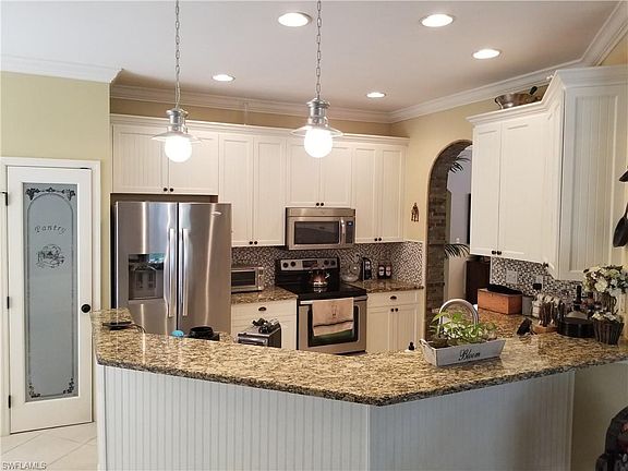 This home boasts beautiful golf course views. This popular Woodford model offers a desirable floor plan and has upgrades and features including floor tile, crown molding throughout, pool, wavered deck, and more.
