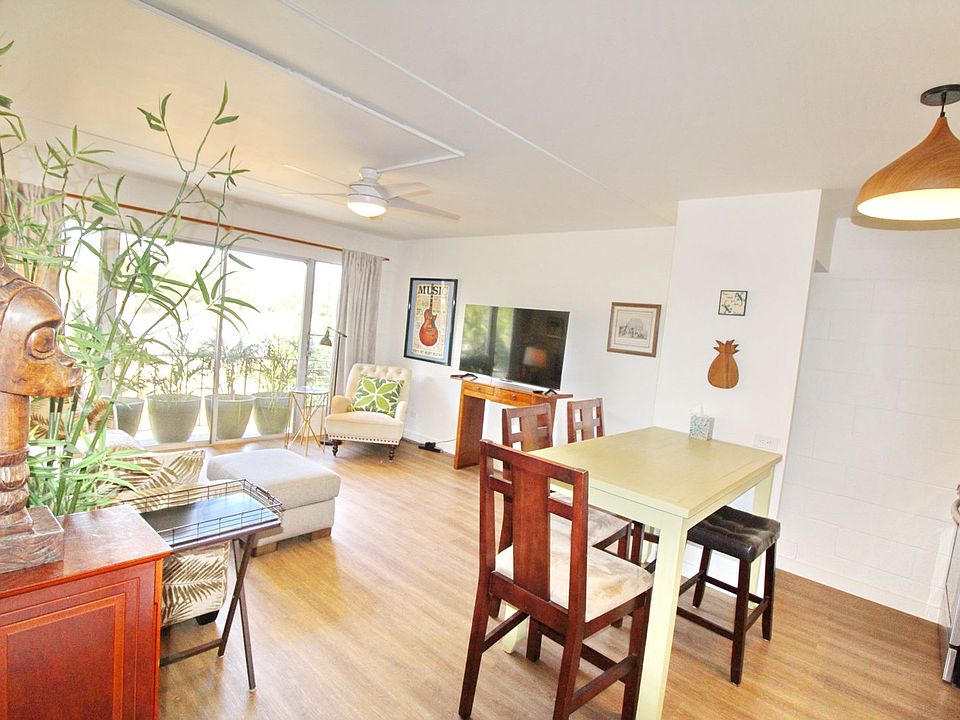 This nicely furnished one bedroom one bath unit is located in desirable South Kihei across from the Cove, Charley Young, and Kalama Beach Park. Swim, SUP, surf, kayak, snorkel, or just sunbathe right across the street. Multiple amenities at Kalama Beach Park include tennis, baseball, basketball, skateboarding, roller skating, and is a perfect for watching the sunset to end the day. Immediately out front is a bus stop and very close to restaurants, bars, coffee shops, stores, and library. Inside, the unit has been tastefully remodeled from floor to ceiling, including new Luxury Vinyl Planking flooring, freshly painted interiors, wall unit A/C in living room, new stainless steel appliances including a gas range, butcher block counter top, soft-close cabinetry, all new electrical fixtures, new stacked washer/dryer in unit for your convenience, newly renovated bathroom, king size bed, ample closet space, and quality furnishings. Solid concrete construction increases ones comfort level with cooler temps and increased soundproofing. Unit is well-situated in the building with well-lit grounds and cameras on exterior of building for safety.