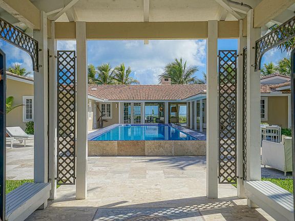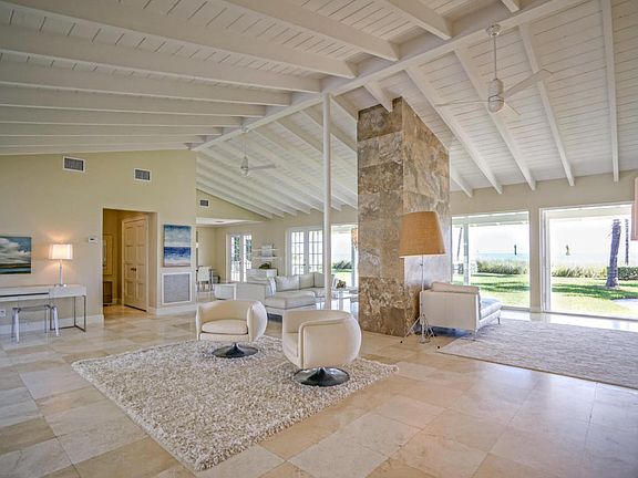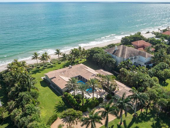 Private oceanfront estate boasts 165' of direct Atlantic Ocean vistas encompassed on 1.67 acres with professional matured landscaping. Renovated villa built by famous architect John L Volk. 4 bed, 4.1 bath, 3 car garage plus guest house, heated pool, fireplace, SS appliances, propane gas, impact windows/doors. Enjoy the rhythmic ocean sounds and breeze while entertaining or relaxing. Sizes are approx/subj to error.