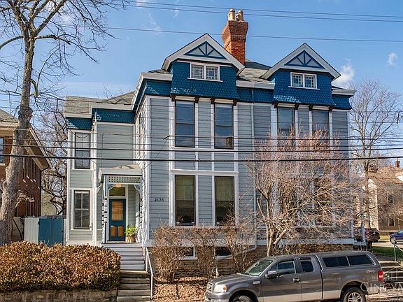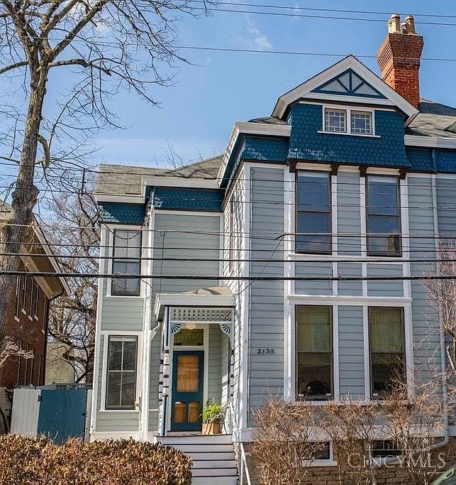 Welcome to 2135 Sinton Ave in Home Sweet Walnut Hills. This 2 bed, 2.5 bath Victorian offers large light filled rooms. Hardwood floors throughout the first floor with high ceilings and architectural elements. Elegant living room with built-ins and a fireplace. Formal dining space. Enjoy an eat-in kitchen with white wood cabinetry, stainless steel appliances, a green house window and a door opening to private outdoor living with a new fence. Second floor family room with hardwood floors, 20 ft vaulted ceilings, skylight, built-ins and a fireplace. Primary suite with wall to wall carpet, walk-in closet and french doors opening to a large ensuite with a double vanity. Second floor laundry. Third floor bedroom and full bath and clawfoot tub. Fresh exterior paint, and newer furnace, AC, and 50 gallon water heater. Minutes to Eden park, Paramount Square and easy access to downtown.