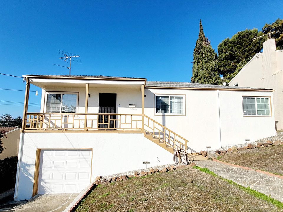 Don't miss out on this beautiful property. Home with 3 bedrooms and 2 baths- "1 bath permit unknow " on main level offer with an spacious open floor plan, Natural Light throughout, Cherry hardwood floor and Central Heat. In-Law unit downstairs is a 1 bedroom & 1 bath unit. " Permits unknow". Buyer(s) are encouraged to investigate and verify the permit and sq. ft of the property to satisfy themselves. Interior newly painted. Property with Bay view. Prime location with Easy access to Freeways, Shopping, Parks, Post Office & Other.