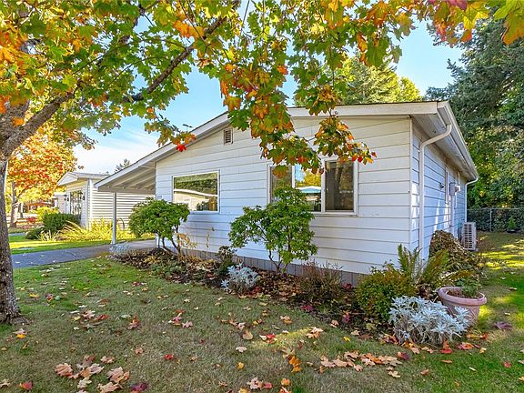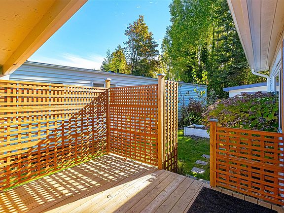 Welcome to Summergate Village, a sought-after 55+ Bareland Strata community of 235 homes. This beautifully updated 2-bed, 2-bath one-level residence shines with thoughtful upgrades throughout. Enjoy a huge new kitchen featuring endless storage with drawers, cupboards, and built-in pantry. The open-concept living and dining area is bright and inviting, enhanced by crown mouldings, and quality wood blinds. Recent improvements include flooring throughout, interior paint, and a new private deck backing onto the forest—perfect for relaxing or entertaining in privacy. A new exterior shed offers additional storage space for gardening tools or hobbies. Comfort is year-round with an efficient heat pump, while updated plumbing, wiring, & vinyl windows ensure peace of mind. The low strata fee of $327/month covers water, sewer, & weekly lawn care. Enjoy vibrant community amenities including a heated indoor pool & hot tub, community hall with daily activities, library, games room, & meeting space.