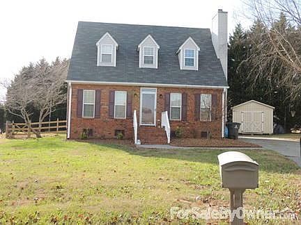 Cape cod style home located in quiet cul-de-sac close to several amenities (Shopping, restaurants, hospitals, etc). Features include: Freshly painted, hardwood floors throughout main level, new carpet upstairs, gas log fireplace, large bedrooms, main level master with walk in closet and master bath with separate shower and Jacuzzi tub, fenced back yard with spacious deck, large storage building, and new roof 2013. Showings will be by appointment only. No lease or rent to own options. Call today!Additional property info: http://www.forsalebyowner.com/listing/3-bed-Single-Family-home-for-sale-by-owner-2135-Woccon-Path-27127/23973271?provider_id=28079