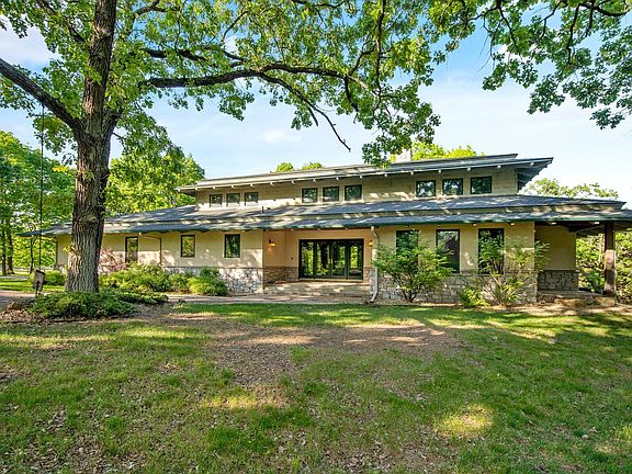 This custom timber frame prairie-style home on 6.5 acres of wooded terrain, was designed and built with big wood timber using a combination of new and reclaimed wood from the Campbell Soup factory. The main level features rustic cherry floors, alder cabinetry throughout! Great rm w/soaring vaults, awesome primary, LL w/o beautifully finished. All the bells & whistles plus Each bedroom has its own private patio. Extra .workshop or studio - Spancrete (28X26), deck (18X8) off the kitchen/dining/great room. 24X40 Building for Guest House, shop, Stable Plus 12X40 Lean-covered porch.