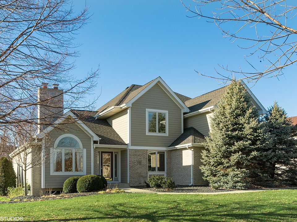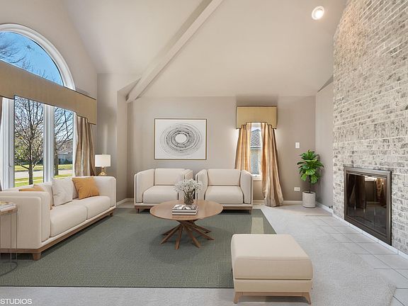 This spacious, beautiful two story home has been wonderfully maintained. Glorious open floorplan with soaring ceilings and magnificent double sided full brick fireplace gracing living and family rooms. White panel doors and trim, including plentiful crown molding. Formal living with elegant half circle window. Oversized formal dining is ready and waiting for future days of entertaining in style. Grand family room includes smart wet bar area for cocktail preparation. Updated kitchen includes stainless appliances, granite countertops, kitchen/homework planning desk with storage, can lights, island with seating space. Coveted home office is located right off the kitchen, ideal for remote lessons and Zoom meetings. Handy 1st floor laundry room includes granite topped counter, sink, cabinetry and leads to attached side load 3 car garage with ez care epoxy floor. Upstairs, you'll find a grand master suite with double-door entry, tray ceilings, extra sitting room that could be home office #2/nursery/exercise room, plus luxe master bath featuring granite topped dual sink vanity, framed mirrors, xl whirlpool soaking tub, shower with custom barn-style glass door. Three more generous bedrooms and a large full hall bath with dual sink in vanity/prep area and separate tub/shower/toilet room. Full basement offers loads of storage now, and potential for your future plans later. The great outdoors is great indeed here! Fabulous 8' Pella patio doors with built in blinds lead from family room and dinette out to your custom maintenance-free deck with excellent living spaces. Main deck is 38x20, covered octagon pergola area is 15x15 and includes ceiling fan, natural gas grill hookup, and roll down shades for sun protection. But wait, there's more! 20x15 side deck is complete with hot tub for de-stressing and relaxing. Sun, grill, dine, chill...it's all here. Plus, there's plenty of back yard to enjoy and room for inground pool, if you're so inclined. Aluminum fenced yard includes lower security panel for smaller dogs-smart! More stuff to know: roof and skylites 2013. Furnace and central air 2016. Hardie plank siding, soffit, facia 2012. Concrete driveway and front walkway 2013. Overhead garage doors 2019. Hot tub 2018. Pella patio doors 2010. Pella windows up and dining room 2016. Summit Hill Elementary and Lincoln-Way East HS.