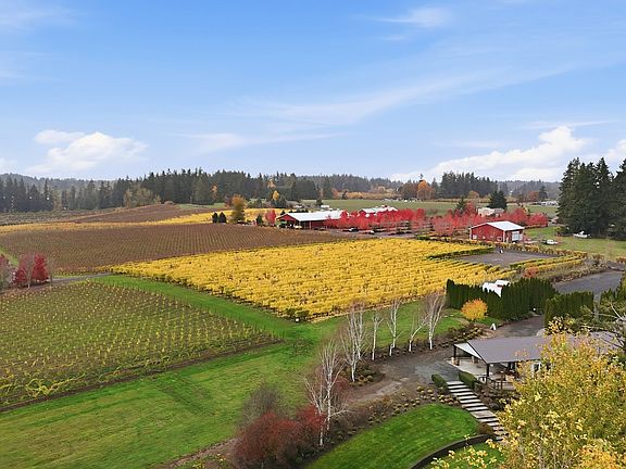 Rare and Remarkable Opportunity! Two Homes. 51.41 acres. 34 acres of Vineyard. Turnkey Winery and Vineyard. WATER RIGHTS. 600 gallon per minute irrigation well. Domestic well 70 gallons per minute. Aurora Vineyards stands as a premier vineyard and winery estate in the heart of Oregon’s Willamette Valley. Recognized for its notable blend of high-quality wine production and vibrant event hosting capabilities, serving both local and destination clients. Tasting room blends rustic elegance with modern comfort, offering chef-prepared cuisine, award winning wines, and live music in a relaxed yet refined setting. Guests enjoy indoor seating and a spacious outdoor deck overlooking a waterfall and pond, creating a memorable experience for casual visitors and wine club members alike. Sale includes the entire real estate holding, all vineyard plantings, the winery facility and hospitality infrastructures, and all associated inventory and equipment. The property encompasses a modern, fully equipped winery, with on-site production capabilities for all stages of vinification. The on-site venue and event spaces provide a picturesque backdrop for weddings, private celebrations, and corporate gatherings. Surrounded by vineyards and manicured gardens, the venue features elegant architecture, bridal and groomsmen suites, and seamless flow into reception areas—making it a turnkey destination for unforgettable events. After 25 years of vision and dedication to his customers and the land, the owner is retiring from his passion of thriving vineyard, winery and event venue which has cultivated widespread acclaim for award winning wines and a proud reputation for quality. This transition marks the end of an era—and the beginning of a rare opportunity for a new owner to carry forward this legacy built on craftsmanship and quality. All buildings and details in document section.