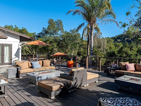 BEAUTIFULLY REMODELED SINGLE LEVEL 3 bedroom 3 bath 2,867sqft contemporary ranch style home on a very usable 1+Acre property. Designer/owner has redone this extremely charming home to include: hardwood flooring throughout, quaint living room with fireplace & French doors that open to a 1,200 sqft deck space, beautiful kitchen with granite counters, Viking stove & breakfast area, spacious family room with 12 foot ceilings & two sets of sliding doors which access the stunning outdoor entertaining areas, spectacular master suite with custom master bath & walk-in closet. Separate guest quarters includes small living room, office, bedroom & 3/4 bath. Use as an in town horse ranch or a family compound. Property is also zoned for horses.