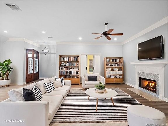 Discover the perfect blend of comfort, style, and convenience in this stunning 3-bedroom, 2-bathroom ranch-style home. Designed with a focus on luxurious living, this home boasts a spacious open-concept galley-style kitchen, complete with luxury vinyl floors and custom metal shutters, seamlessly flowing into the living area where a cozy gas fireplace awaits. A highlight of this home is the inviting sun lounge room, featuring an electric fireplace with customizable color settings. This tranquil space offers breathtaking views of the beautifully landscaped courtyard, adorned with a gazebo, outdoor lamp post, and lush gardens--a serene escape right in your backyard. The primary suite is an oasis of indulgence, showcasing double Swarovski crystal accents, a custom designed shower with a built in bench, hydrotherapy color changing tub, and luxury wallpaper, all designed to create a spa-like retreat. Crystal chandeliers throughout the home enhance the atmosphere of sophistication and warmth. Step outside to enjoy a landscaped front and back yard that includes a producing banana tree, perfect for fresh fruit and shade. Ample exterior storage provides added convenience. This property also features a deck with a gazebo, ideal for relaxing or entertaining. Located just 5 minutes from city landmarks, renowned restaurants, and vibrant attractions, this home offers the perfect balance of peaceful living and urban accessibility. Experience ranch-style living at its finest with this exceptional property that has been thoughtfully designed to meet your every need. All measurements m/l virtually staged. Schedule your showing today!