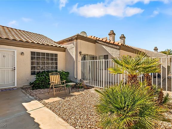 Nestled in the Heritage neighborhood, this charming 2 bed, 2 bath townhome exudes a sense of serenity. Clean, neutral hues with abundant light, this home blends comfort with functionality. The front yard displays native palms, cared for by an irrigation system. Step thru sliding doors onto your private terrace-a tranquil oasis shielded by fencing and sheltered from the elements; an idyllic spot to unwind or bask in nature. Just moments away from the community pool with barbeque areas, perfect for entertaining friends/family. Kitchen w breakfast nook has all the conveniences. Primary bedroom boasts its own bath for added privacy, and a separate bedroom and bath offers versatility for visitors or family. Spacious 2-car garage provides ample storage space or room for tinkering on projects. Move-in ready with all appliances included, this adorable townhome beckons you to experience the Laughlin lifestyle - where nearby parks, riverside adventures, dining options, and entertainment await.