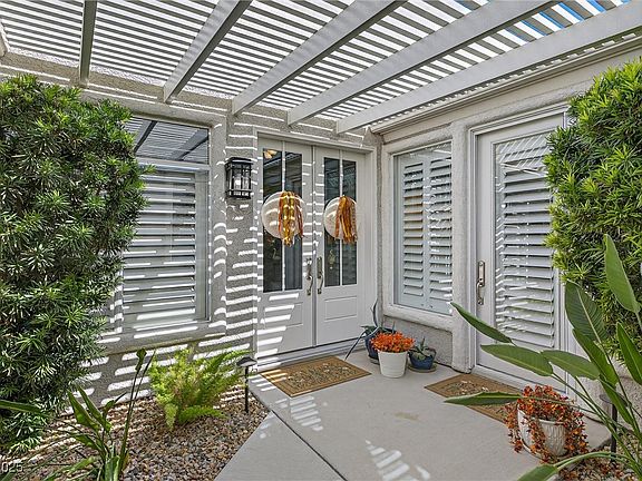 WELCOME HOME TO THIS BEAUTIFUL, NICELY UPGRADED, SINGLE-STORY SUMMERLIN RESIDENCE FEATURING AN OPEN FLOOR PLAN WITH 2,429 SQ FT OF LIVING SPACE. THIS HOME OFFERS 3 SPACIOUS BEDROOMS, A GREAT ROOM, ADDITIONAL TV ROOM, A DEN, AND 3 BATHROOMS. ENTER THROUGH A GORGEOUS GATED AND COVERED ENTRYWAY INTO A BRIGHT AND AIRY INTERIOR WITH HIGH CEILINGS AND AMPLE STORAGE THROUGHOUT. HOME OFFERS AN EXTRA PRIVATE ENTRANCE IN TO THE TWO GUEST BEDROOMS MAKING IT SUITABLE AS A CASITA AREA OR NEXT GEN SPACE. ALL APPLIANCES ARE LIGHLTY USED AND HAVE BEEN UPGRADED. NEW FLOORING, PAINT, CROWN MOLDINGS, BUILT-IN CLOSET SPACE IN FRONT BEDROOM, UPGRADED FIREPLACE, CUSTOM SHUTTERS THROUGH OUT. ENJOY YOUR PRIVATE BACKYARD RETREAT COMPLETE WITH A POOL AND SPA COMBO, PERFECT FOR RELAXATION AND ENTERTAINING. EXPERIENCE THE BEST OF SUMMERLIN LIVING IN THIS STUNNING HOME!