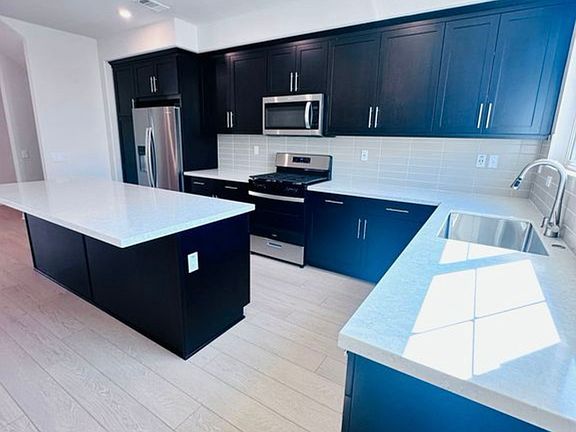 Brand new beautiful corner unit, Comes with a brand new washer, dryer, and refrigerator!! 3 bedroom + den, 2.5 bath townhome offers approximately 1,600 square feet of modern living space on a prime lot with green views. This home is located within the highly sought after Gateway Towns at Gateway, part of a vibrant community in Pomona, California. The lower level of this three-story townhome features a versatile flex room, perfect for a home office or playroom, which can be accessed from the porch or the attached two-car garage. The garage features a brand new tankless water heater and fully paid solar for significant savings. On the main floor, you'll find an open layout centered around a well-appointed kitchen with a large center island, stainless steel appliances, stylish Shaker-style cabinets, and custom double-paned shades on the double-paned windows. The dining area opens to the spacious great room with direct access to a private balcony, perfect for entertaining or relaxing. Upstairs, the secluded master suite offers a private retreat with a spacious walk-in closet and a luxurious bathroom with double vanity. The upper level features two additional bedrooms, a full hall bathroom, and a convenient laundry room. As part of the Gateway Towns community, residents enjoy great amenities like a pool and playground. Great location for commuting! This home is close to major freeways including 71, 60, 57, and 10, making your daily commute a breeze with easy access to Phillips Ranch, Chino Hills, Chino, and Ontario. Pomona is located within Southern California's Los Angeles County and offers a vibrant lifestyle with nearby Pomona Raceway and the Fairplex, home of the Los Angeles County Fair. You'll also be close to Cal Poly University, the historic Pomona Mall, and a variety of outdoor activities including boating, fishing, hiking, and biking. This home is the perfect blend of modern living, conveniences, and the best of Southern California. 1) 1 month deposit, good credit and salary proof 2) HOA included 3) Utilities: gas/ water/ electricity/ trash not included (but it comes with solar) 4) Small dogs/ cat allowed 5) No smoking 6) Renter's insurance is required