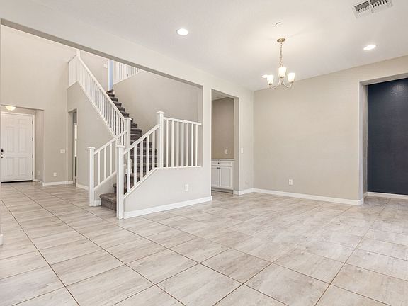 This beauty has so much to offer! Large Island kitchen open to family room w/2-way fireplace to patio* Breakfast bar w/stunning granite & pendant lighting. French door refrigerator w/freezer drawer, double wall ovens, dishwasher, cooktop with tiled backsplash. First floor is all tiled & includes: 2nd Master Bedroom, Den, Powder Rm, Dining Rm, Living Rm, Family Rm, Kitchen* Upstairs features laundry room w/laundry sink, master bedroom w/double vanities, sep shower/tub & walk-in closet, huge loft, hall bathroom & 3 secondary bedrooms. Perfect backyard w/fenced play pool, turf, covered patio w/fireplace, patio furniture is included in lease. Weekly pool service is included in lease*3-car tandem garage*Dogs, if approved $50/mo, per dog,$350 dep, per dog* $195 admin fee