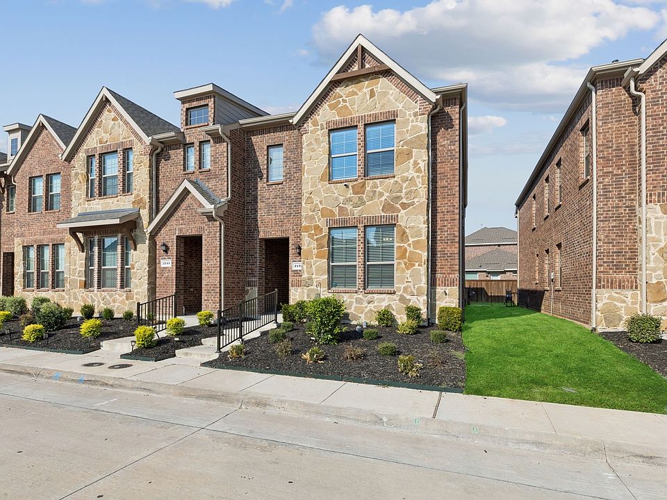 Welcome to 2137 Buffalo Hill Dr, a 2022-built townhome that blends modern comfort with a vibrant, walkable setting near Dallas. Offering 1,675 square feet across three bedrooms and two and a half baths, this residence presents a thoughtfully planned layout, a lightly lived-in feel, and quick access to major routes for easy commuting. Inside, large windows draw in natural light and are finished with custom window coverings by A Better Blinds on every window. The main living area supports everyday ease and effortless hosting, with room to gather and relax. A well-appointed kitchen anchors the space, providing generous cabinet storage, ample prep surfaces, and clear sight lines to living and dining zones so conversations carry from meal prep to movie night. Upstairs, three bedrooms include a spacious primary suite with built-in cabinetry, dual sinks, separate vanities, a soaking tub, and a walk-in shower. A Jack and Jill bath connects two secondary bedrooms, offering additional functionality. The conveniently located half bath serves the main level. Throughout, the aesthetic is clean and contemporary, with durable finishes selected for both style and low maintenance. Additional features include a tankless water heater for energy efficiency and a neighborhood community pool. The surrounding community enhances everyday living with nearby restaurants, new shops under development, and dog-friendly walking paths. The HOA maintains everything outside the walls of the home, adding to the ease of ownership. With proximity to the freeway, this location balances access, amenities, and low-maintenance living—an ideal lock-and-leave lifestyle with the feel of a private retreat. Well maintained, close to dining and services, and situated in a growing, amenity-rich area, 2137 Buffalo Hill Dr is a polished option for those seeking contemporary construction, convenience, and comfort in one cohesive package.