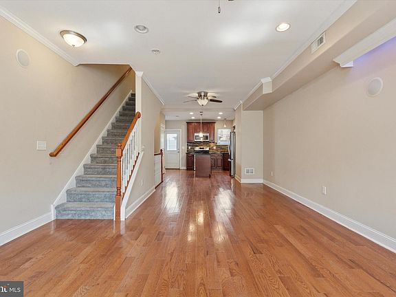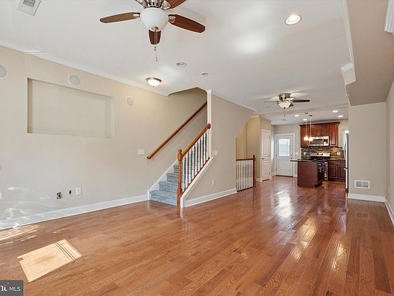 3 Bedrooms · 2.5 Baths · Finished Basement · Rooftop Deck; this spacious and updated Point Breeze rowhome offers the perfect setting and location for easy city living. This three-story home begins with a finished basement featuring a tile floor and half bath—ideal for a game room, media space, or home office. The main level boasts a generous 23’x14’ living room with hardwood floors, two ceiling fans, and a raised ceiling accented by crown molding. Just beyond, the kitchen offers stainless steel appliances, granite countertops, under-cabinet lighting, ceramic backsplash, center island, and a pantry closet. A rear door opens to the fenced-in backyard, perfect for relaxing or entertaining. On the second level, you’ll find two large bedrooms—one with a spacious closet and the other with a walk-in—each with carpeting and ceiling fans. A full hall bath serves this level, providing convenience and comfort for family or guests. The third-floor primary suite features hardwood flooring, a large walk-in closet, ceiling fans, and an oversized bath with dual vanities. One of the home’s highlights is the brand-new rooftop Trex deck, offering panoramic city views and a private retreat for every season. The deck sits on a new roof with a transferable 25-year warranty for peace of mind. Don’t miss this opportunity to enjoy a beautifully updated home with convenient access to the sports complex, airport, and major highways leading to the Jersey Shore.