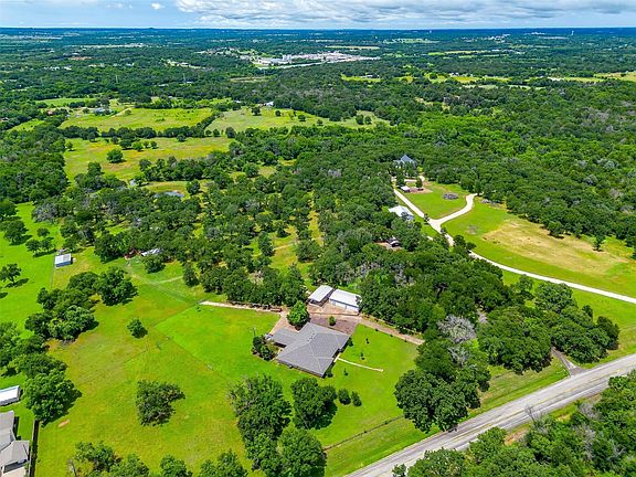 This property offers a unique opportunity to own a gorgeous Ranchette within commuting distance to Dallas or Fort Worth! Two homes, two insulated Shops, a greenhouse, thick Bermuda Grass for grazing animals, fully and Crossed fenced with several loafing sheds, water access at various locations and a pond. The main home has a Brand New Roof, tons of updates and tons of storage offers four bedrooms and four full bathrooms, plus an office, two of bedrooms have en suite bathrooms, one has dual bathrooms and one has a built in safe! Two large living rooms featuring an impressive wood stove, this home would be ideal for multigenerational living. The large kitchen and dining room with two huge pantries, a wood burning fireplace and a butcher block Island bring everyone together. The fourth bedroom is also very large and could easily be a game room, there is an office, two wood burning fireplaces and porcelain tile throughout for easy maintenance.Venture outside to the Cowboy Paradise Pool and hot tub on your private covered back Patio. There are two insulated Shops with power for all of your outdoor storage and project needs, 30 x 50 with two roll up doors and 15 x 20 with a mini split AC unit, endless possibilities, add a bathroom and you have a bunk house! Meander up the hill to the second home that offers three bedrooms, a full bath and a so cute kitchen and patio, this home also has a storage building with a two car carport. The gated Ag Exempt land is graced with majestic Live oaks, peach trees, Black walnut, Fig and Pecan trees. With a total of seven bedrooms and five bathrooms between the two homes make this dream property your reality. This home is currently protected by Super. Home Warranty Re-Invented. This property is a must see!