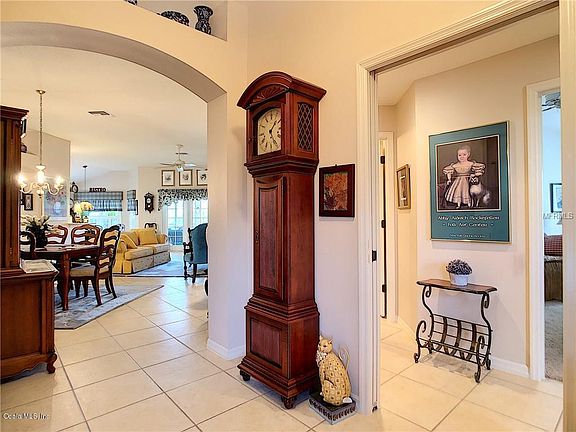 POOL HOME! (Be sure and look for 3D virtual tour) Enjoy this gorgeous 3 bedrooms 2 bath IRIS Model with 2 car+cart garages, located in desirable Village of ST. CHARLES. Enter the screened entryway with river rock flooring leading to the decorative leaded glass door and windows. Inside you will find this well maintained original owner owned home features numerous upgrades starting in the kitchen with updated stainless appliances, under cabinet lighting, quartz countertops & backsplash, all wood cabinets with pullouts, pantry and 18" tile on the floors installed on a diagonal. The living room can be opened up to the huge covered lanai through the double french doors. The Lania has river rock flooring and is wide open to the beautiful 24' X 12' free-form pool with waterfall, solar heat, all enclosed by a huge screened enclosure. The garage has an epoxyed floor additional storage and attic space. Outside you will find a nice size yard with curbed planting beds and all nicely landscaped. Be sure and look for the 3D virtual tour so you can see all the many features and make your appointment to see all this wonderful home has to offer.