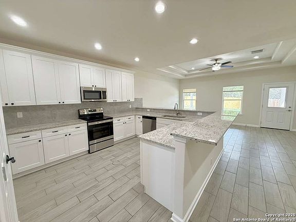 Located on the north side of Canyon Lake, this stunning two-story home combines modern design with lake-life charm. Featuring 3 spacious bedrooms and 2 full bathrooms, the home offers an inviting open floor plan with soaring ceilings, recessed lighting, and a chef's kitchen complete with granite countertops and plenty of room to gather. The luxurious primary suite is conveniently located on the main floor and showcases a spa-like bathroom with a soaking tub, walk-in shower, dual vanities, and a generous walk-in closet. Upstairs, you'll find two additional bedrooms and a full bath, perfect for family or guests. With high-end construction, a 2-car garage, and no HOA restrictions, this property is truly a rare find. Plus, you're just minutes from Boat Ramps #22 and #23, making lake days easier than ever. A perfect blend of comfort, style, and convenience.