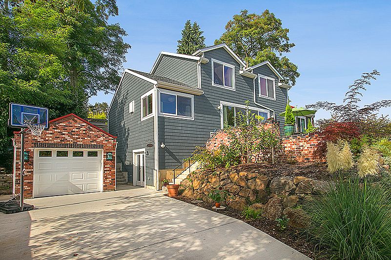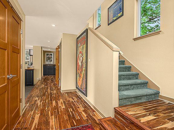 Stunning home custom built in 2012 with every detail given incredible thought, care, and style. Open living room with fireplace and built-in cabinetry flows to kitchen featuring white marble countertops, stainless steel appliances, roomy breakfast nook, and red marble wet bar. Upper level boasts vaulted ceilings, operational skylights, large full bath, and plenty of light. Fully finished basement has large family room plus private bedroom and full bath. Acacia hardwoods, Marmoleum, polished concrete, and carpeted floors used throughout. All this surrounded by a lush rain garden, two patios, and spacious garage & driveway. Close to award winning schools, parks, and trails. Gorgeous!