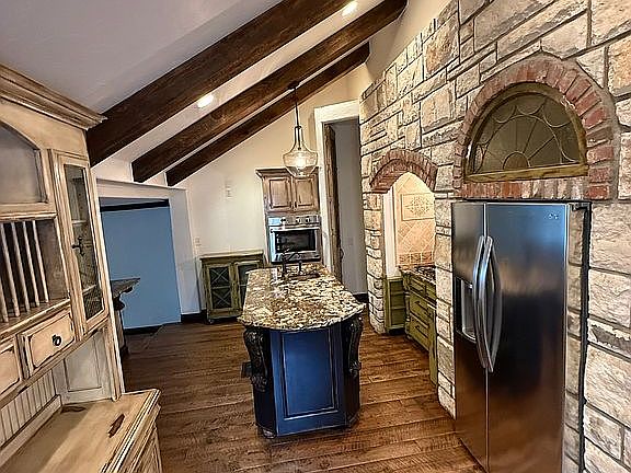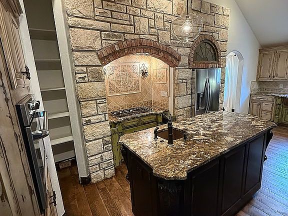 Tudor archesHalf bathThree bedrooms downstairsArched entrywaysOriginal wood flooringSecond refrigeratorChef-style dcs appliances