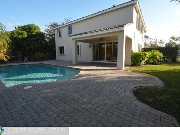 Enjoy the oversized pool, patio and expansive fenced in backyard of this 2 story home. The lush landscaping provides privacy and a resort style feel. Upper level has all wood floors, lower level has tile set on the diagonal. Kitchen has beautiful real wood cabinetry. Home is protected by accordion shutters. The quiet cul de sac makes this the perfect location! Gated community w/abundant green areas & parks.