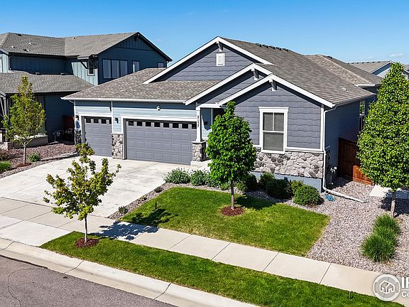 Enjoy resort-style living when you buy this stunning single-level home backing to a greenbelt in Windsor's coveted Raindance community! This beautifully upgraded three-bedroom home blends the best of new construction with move-in-ready convenience-featuring finished landscaping, fencing, and tasteful custom touches throughout. Step inside to discover soaring ceilings, abundant natural light, and sleek, modern finishes. The open-concept great room offers a cozy fireplace framed by custom built-ins, while the gourmet kitchen impresses with a large island, stainless steel appliances, and elegant quartz countertops. Retreat to the spacious main-level primary suite, complete with sprawling countertops, double sinks, large shower, and walk-through access to the spacious closet and laundry room. The unfinished basement presents tons of storage and plenty of space to build out your own vision. Step outside to a fantastic combination of covered and open-air patio space-ideal for hosting or unwinding with peaceful greenbelt views. An oversized three-car garage with 220V service is perfect for EV charging or workshop use. Pick your own fresh seasonal fruit and vegetables from private neighborhood orchards and farm fields or walk and bike on the trail system. Enjoy the world-class exclusive amenities like the Raindance River Resort and Raindance National Golf Course, plus easy access to medical facilities, shopping and restaurants. An incredible home and amazing value.