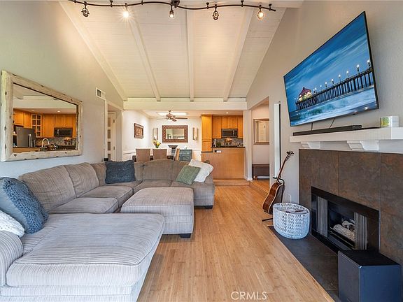 Welcome To your New Beach Home located in the Highly Desirable Gated Community of SeaSpray! This Turn-Key End Unit offers Three Bedrooms, Two Baths, with almost 1200 Sq. Ft. of Living Space. This Home Boasts one of the Best Interior Locations in the Complex and is located only a Mile and 1/2 to the Beach! The Entry leads you into a Spacious Living Room which features Soaring Wood Beamed Ceilings, Cozy Fireplace, Newly re-finished Bamboo Flooring, Fresh Paint, and a Wall of Windows that Bring a Ton of Natural Light. The Kitchen offers Granite Counter Tops, Custom Cabinetry, Custom Tile Backsplash, Pantry Storage, Skylights, and a Generous Dining Area. The Open Floor Plan is great for Entertaining! The Living Room Sliding Glass Doors lead you out to one of your two Covered Private Patios which overlook a Huge Tree Lined Greenbelt. The Expansive Primary Suite offers Vaulted Ceilings, a Wall of Custom Closets, Newer Paint, Newer Carpet, and Sliding Glass Doors leading to another Covered Patio Area. The En-Suite Primary Bathroom features an Extra-Long Vanity Area, Granite Countertop and Tiled Bathtub/Shower Combo. The Secondary Bedrooms are nice in Size and one of them features a Vaulted Ceiling. The Guest Bathroom is Freshly Painted and Offers a Granite Top Vanity, Tub/Shower Combo and Newly re-finished Bamboo Flooring. The Home also Boasts an Inside Laundry Room, Entry Coat Closet and Linen Storage in the Hallway. The Unit Comes with a Detached Single Car Garage and a Additional Assigned Parking Spot. The Complex has just completed 6.5 Million Dollars' worth of Renovations and Upgrades! The Community features a Pool, Spa, Clubhouse, Tennis Courts, Volleyball Court, Greenbelt Areas throughout, and plenty of Guest Parking. Additionally there are two Private Gates within the Complex that allow you to access the Bike and Walking Trails leading you directly to the Beach and Ocean! The Complex is conveniently located near Top Rated Schools, Restaurants, Parks, Hiking Trails, Shopping, and Trader Joe's is right across the street. The HOA includes Water, Trash, and Exterior maintenance.