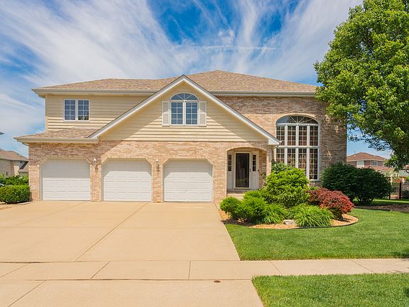 Welcome home to this stunning, meticulously maintained residence with classic style and modern flair. This exquisite 5 bedroom, 3 bathroom home with a 3 car garage offers terrific curb appeal and is located in the pristine neighborhood of Georgetown Subdivision close to Prestwick Country Club, Old Plank Train , parks and easy access to interstates i-80&i-57. Crafted with care and love, this expansive residence boasts 2018 roof, separate HVAC systems for comfort, 4 spacious bedrooms and 2 bathrooms upstairs with an inviting loft with plenty of natural light, ready for all your cozy afternoon readings or yoga sessions. Every bedroom has plenty of storage to keep belongings organized, and the master bedroom is especially spacious with 4 closets and a sitting area. The en suite ceramic bathroom features double sink vanity with granite counters, a luxurious jetted jacuzzi tub and separate shower, perfect for soaking away your troubles after a long day. On the main floor you'll find a 5th bedroom perfect for a guest, an office or a family member with its own full shared bath (self flushing warming seat, granite counters and updated hardware) as well as spacious living areas. You will love a bright and airy 2 story living room with beautiful added features like shining crystal chandelier or custom 2 story window treatments that all contribute to a warm, inviting atmosphere. Beautiful eat-in kitchen with an island and offering lots of room for family meals. The solid wood cabinets, black onyx granite counters, can lighting and stainless appliances create a stunning backdrop for the space. Enjoy having your morning coffee or dinner outside in the accompanying outdoor area. With an open concept to the family room, adjacent dining room you can spend quality time with loved ones while prepping a meal, making it a great spot for entertaining! Enjoy the airy openness as it flows through a breakfast area into a cozy family room with access to the outdoors. Prepare gourmet meals and entertain friends in style! Stunning family room with a cozy fireplace and hardwood floors offers the perfect place to relax and unwind. Enjoy gatherings in the spacious area, adjacent to the kitchen. The natural light that streams in from the windows creates an inviting atmosphere. Step outside onto the patio for a BBQ or just take in nature's beauty in the private backyard and discover a lush oasis featuring deck with a shade owning and professional landscaping. Create memories here with your family and friends- don't miss out on this amazing opportunity! Attached garage is a car enthusiast's paradise, with epoxy flooring and a 220v outlet for conveniently charging your electric vehicle. Plus, plenty of space for storage or a custom workshop setup. And you'll love the convenience of an attached garage when running errands around town. Full unfinished basement is a perfect opportunity for potential homeowners to expand their living space or turn it into an extra storage area. With its blank canvas, you can transform this space with your own unique vision and make it something special. Imagine the possibilities of having an extra bedroom, office, theater room - really anything that you could dream up! The high ceilings will provide plenty of room for expanding, and the wide windows will let in lots of natural light. Schedule a viewing today! VA, FHA, Conventional Loans welcome.