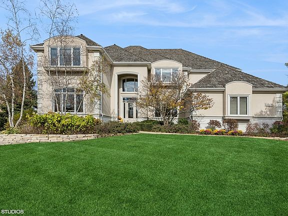 Nestled on nearly half an acre in the desirable community of The Ponds of Kildeer, this gorgeous home is situated on a beautiful, private cul-de-sac surrounded by lush green space and serene views. As you step inside, you are greeted by an impressive two-story foyer adorned with a stunning chandelier and a grand staircase. To your right, a spacious dining room awaits, while to the left, you'll find an elegant formal living room. The front of the home also features a private office/5th bedroom and a large powder room for added convenience. Continuing through the home, you'll be captivated by the expansive two-story great room, complete with built-in shelving and a beautiful stone fireplace. Adjacent to this space is the eat-in kitchen, showcasing 42-inch cabinets, a generous island, stainless steel appliances, double ovens, granite countertops, and a buffet area with upper and lower cabinets. A large mudroom provides access to the garage and side yard, featuring a washer and dryer for your convenience. The second level is home to a luxurious primary suite with a massive walk-in closet and an en-suite bathroom featuring a soaking tub, shower, and dual vanity. A charming princess suite also graces the upper level, complete with a walk-in closet and private bath. Bedrooms 3 and 4 share a Jack-and-Jill bath, providing ample space for family or guests. The lower level is an entertainer's dream, featuring a large bar with custom cabinetry, sink, dishwasher, wine fridge, beverage refrigerators, and microwave. A glass enclosure showcases your prized collectibles, while a beautiful glass electric fireplace adds ambiance to this incredible space. A gaming area overlooks the media room, perfect for hosting friends and family. Behind a custom barn door, a spacious gym awaits, along with additional storage in the mechanical room and a large storage room. Step out from your remarkable lower level onto a stunning paver patio, ideal for enjoying fresh air and admiring the beautifully landscaped yard or starry nights. The three-car garage offers ample storage and convenience. This home is conveniently located near the vibrant dining and shopping options of Lake Zurich and Deer Park, with easy access to Whole Foods, Trader Joe's, Mariano's, and Jewel. Enjoy nearby parks, transportation, and highways, all while being part of the award-winning D95 Lake Zurich school district. Don't miss the opportunity to make this exceptional property your new home! ***NEW ROOF BEING INSTALLED 11/18!!!***