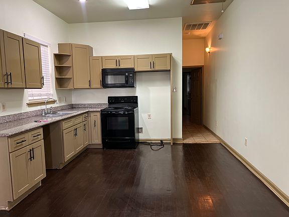 Freshly painted shot-gun style double home located less than 10 minutes from downtown. Property has 3 bedrooms with 1 bathroom. Kitchen and living room located at the front of the home. Washer/dryer connect available. Nice size backyard with private side entrance. Electric stove and microwave provided.