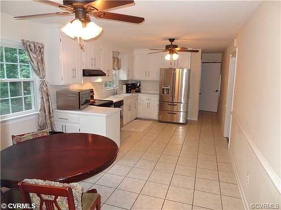 EASTERN POWHATAN!! Almost 2400 sq ft brick rancher with 4 bedrooms, 2 full baths with finished basement on almost an acre lot. Beautiful corner landscaped lot w/ circular drive & kids play area in rear. First floor features a large eat-in kitchen w/ pantry, 2 ceiling fans, tile floors & stainless appliances. Huge master bedroom w/2 closets,2 ceiling fans,& private bath. Living room overlooking private yard and a second bedroom w 2 closets rounds out the first level. Full finished basement w/family room/exercise room/or kids playroom w/brick fireplace and access to rear patio overlooking yard. Two more bedrooms in basement level including a possible 2nd master w/tiled flooring, large closet, & private entrance. New Roof, pull down attic & replacement windows.