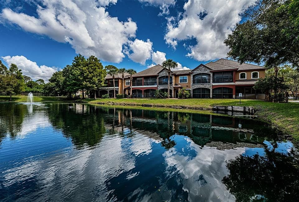No Milestone and NO Flooding! This stunning waterfront retreat offers breathtaking pond views right from your private screened-in balcony in the gated community of Tuscany at Innisbrook. Best pond views in Tuscany. 2 bed, 2 bath, 1 car attached garage and screened in patio with pond views. No need to worry about a Milestone study or Structural Integrity Report (SIRS) with this condo. Inside, the open-concept design features gorgeous hickory wood flooring, elegant crown molding, and soaring 9-foot ceilings, creating a bright and spacious atmosphere. The split-bedroom layout provides privacy, with the primary suite overlooking the water, complete with wood flooring, a walk-in closet, and en-suite bath featuring a garden tub/shower combination. The second bedroom also boasts wood flooring, a walk-in closet, and stylish crown molding plus a walk-in closet. The kitchen is a chef’s dream, featuring stainless steel appliances, a breakfast bar, pantry, and center island, making it perfect for cooking and entertaining. An attached garage adds extra convenience, making everyday living effortless. Living in Tuscany at Innisbrook means access to resort-style amenities, including two heated pools, a clubhouse, fitness center, theater room, banquet room, tennis courts, basketball courts, playground, and even a car wash station. Plus, you're just minutes from beautiful Gulf Beaches, Tampa, top-rated restaurants, theme parks, and endless entertainment options. Easy commute to the Gulf Beaches, Pinellas Trail, downtown Palm Harbor, Tampa, Airports, restaurants and lots of entertainment. This is more than just a home—it’s a lifestyle. Don’t miss your chance to own this hidden gem in a well-managed, thriving community. Schedule your private tour today!