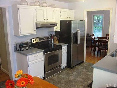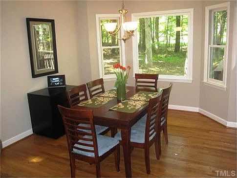 Privacy and Convenience! Charming 2 acre retreat in friendly neighborhood near shopping and I-40. Cul-de-sac location, rocking chair front porch, generous back deck, woods for roaming, bay window, hardwood floors, SS appliances, space-maximizing floor plan for comfortable living. Invisible fencing, storage shed. 15 min to UNC, 20 min to Duke, 5 min to EWS and nature preserve.