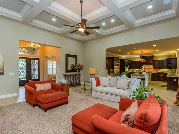 Whether you prefer a relaxing quiet evening at home or hosting a large dinner party this rare find in Copper River with over 4600 sf (all single story) and an over 17,000 sf estate sized lot lets it all happen with ease in casual elegance.  Fantastic layout with spacious open kitchen complete with gourmet KitchenAid 6-burner cooktop, pasta pot filler faucet, farm sink, built in fridge, plus butler's pantry with additional double dishwasher, wine fridge & more.  Formal Dining, Great Rm, Office, 5 large Bdrm each with direct bath access (one Jack&Jill, 1 ensuite), oversized laundry room. Tall ceilings let in plenty of natural lighting, beamed ceiling treatment and high end lighting compliment the design.  Private backyard without neighbors directly behind with room for a pool & outdoor kitchen.  Guests will appreciate handsome carriage lighting and water feature before entering through custom iron & glass doors.  Enjoy the country club lifestyle in the gated Villa Alicante.  see video.