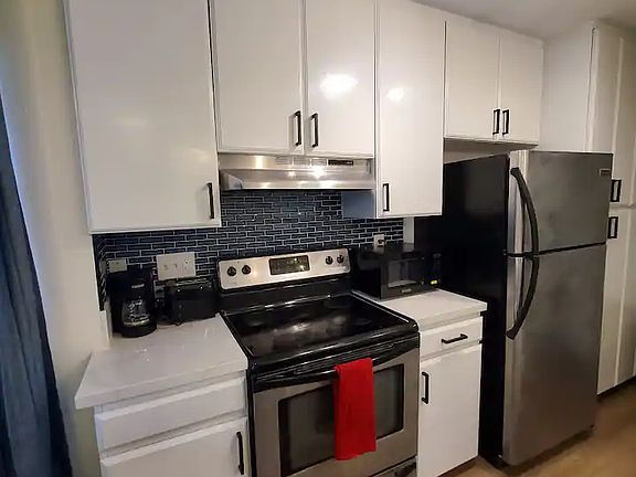 You'll find a modern kitchen equipped with top-of-the-line appliances, perfect for unleashing your culinary creativity. Host gatherings and intimate dinners in the spacious dining area, complete with seating for six.