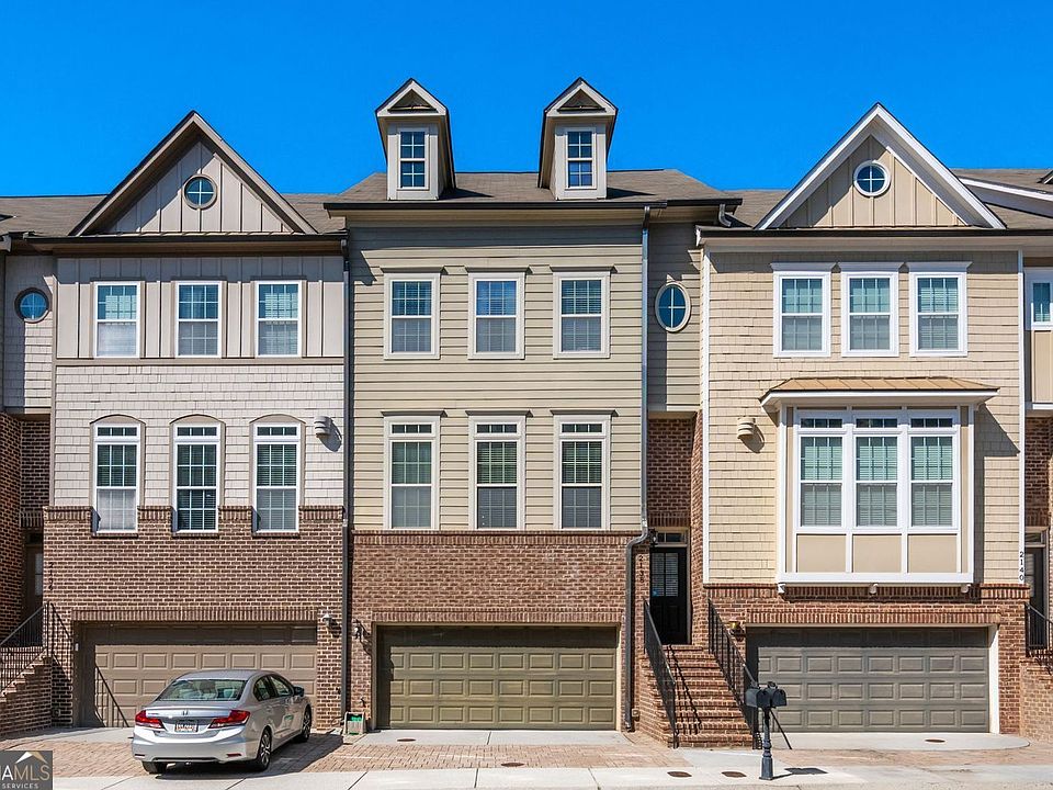 Brock Built craftsmanship meets a best-in-class location. Set in Vinings on the Chattahoochee, this townhome puts Westside Provisions, The Battery/Truist Park, Vinings Jubilee, Smyrna Market Village, Buckhead and Midtown within easy reach-two quick turns to I-285/I-75, yet tucked into a quiet, sidewalked, swim/tennis community. Inside, a designer kitchen with waterfall quartz island, hex backsplash, gas range and rich shaker cabinetry anchors an open main level framed by all-hardwood floors. The great room lives large with a modern gas fireplace and a wall of windows that step out to a treetop deck-private, green, and perfect for evenings in. Upstairs, the tray-ceiling primary suite offers a double vanity and glass walk-in shower, while secondary bedrooms keep the floor plan flexible. Downstairs, a rare walk-out terrace level with full bath opens to a fenced backyard and covered patio-true indoor-outdoor living you won't find in most comparables. A two-car garage, fresh systems, and move-in polish round it out. Bolton Academy zone. Appliances convey. Homes with this pedigree and position don't sit. Arrange your private showing today-call your agent for immediate access.