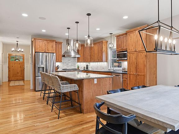 Come home to this beautifully detailed residence in the sought-after Stone Mill Farms community! Perfectly situated on a quiet cul-de-sac near top-notch amenities, this home stands out with exceptional craftsmanship and character. Enjoy a professionally landscaped yard, welcoming front porch with knotty pine ceiling, and custom built-in bench and shelving in the entry. Elegant wainscoting accents the main floor and stairwell, while custom built-ins frame the upstairs window and separate the dining and living rooms with timeless style. Features include solid-core doors, two cozy gas fireplaces, a “Pirate Ship” playhouse, and a stunning paver stone patio for outdoor entertaining. Residents of Stone Mill Farms enjoy resort-style living with a Community Center, Fitness Center, game room, pickleball courts, hockey rink with warming house, pool and wading pool, Residents Club, five private parks with playgrounds, soccer pitch, splash pad, four outdoor basketball courts, and miles of walking trails.
