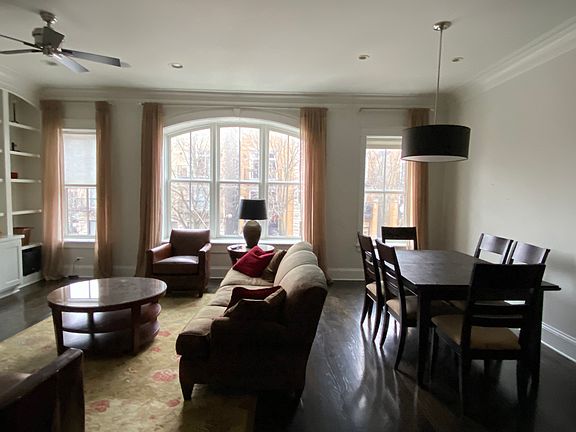 This cozy 3 bedroom condo in the heart of Roscoe Village is perfect for any long-term tenant. All utilities are in included at this fully-furnished condo in a quiet and quaint neighborhood of Chicago. The gorgeous natural light & coziness of the large living space flows seamlessly into the dining & kitchen areas. It's spaciousness leads out back to a private deck complete with grill which is perfect for outdoor gatherings. After taking in all the neighborhood and city have to offer, settle into comfortable, roomy beds with a tv in every room. There is also a pack & play and high chair for any little ones!