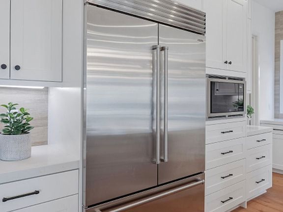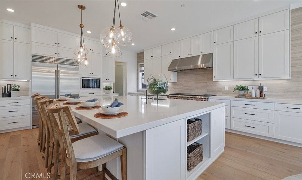 This stunning home showcases a bedroom with its own bath on the first level, which is ideal for Guests, along with an Office area. An inviting open floorplan includes a Great Room, and a chef's kitchen with a spacious walk-in pantry, along with Wolf appliances and a Sub-Zero refrigerator! The oversized kitchen island, with quartz counters, makes for easy entertaining! The sliding glass doors opens up to the California Room with a cozy fireplace, seamlessly extending your living space into the backyard.