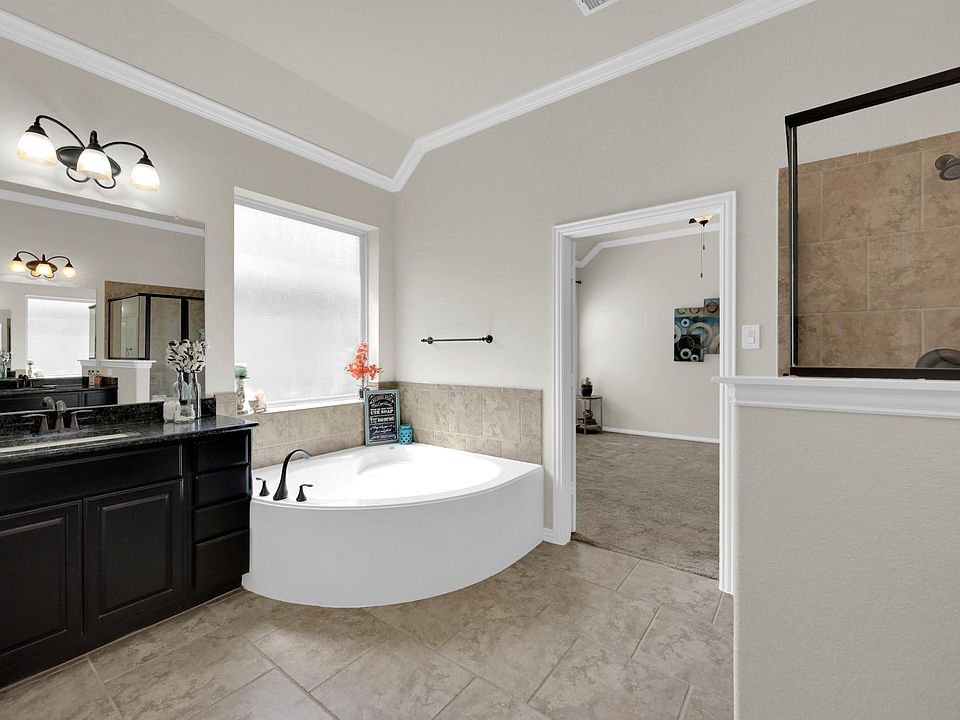 From the moment you step onto the welcoming front porch, this home invites you to imagine a life filled w/ gatherings, laughter, & moments worth remembering. Open-concept design connects dining room, spacious living area, & breakfast room—complete w/ abundant cabinetry, generous countertops, & corner pantry. Sunlight pours through a wall of windows overlooking the backyard, where a covered patio, greenbelt views, no back neighbors, & private gate create a peaceful retreat. Here, weekend BBQ, quiet morning coffees, & impromptu celebrations find the perfect setting. Mud room off the garage & laundry rooms keep life organized, while the garage’s custom shelving offers smart storage. Primary suite features walk-in closet & custom shelving for all your organizational needs. Every space has been thoughtfully designed to feel welcoming, functional, & full of light. W/ a full sprinkler system, French drain, & lush landscaping, this home blends comfort, beauty, & function for your next chapter.