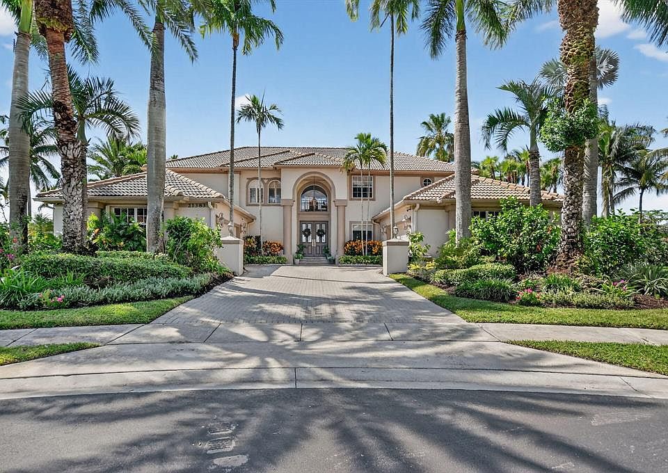 An incredible opportunity to live in this one-of-a-kind 7-bedroom + office estate, set on the largest lot in the prestigious Estates of Boca Falls. Located on a rare pie-shaped cul-de-sac, this home offers sweeping lake views, exceptional privacy, and true resort-style living. The thoughtful layout features a first-floor primary suite with French doors to your private outdoor retreatincluding a heated oversized pool, elevated spa, cabana bath with outdoor shower, and lush landscaping.