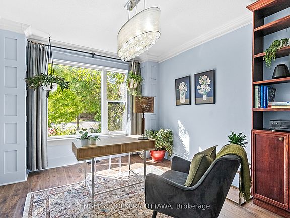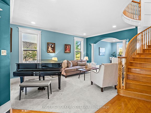 Tree-lined crescentBlack metal roofEnergy-efficient windowsCustom trim workHuge windowsDramatic circular open-to-below hallwayDedicated office
