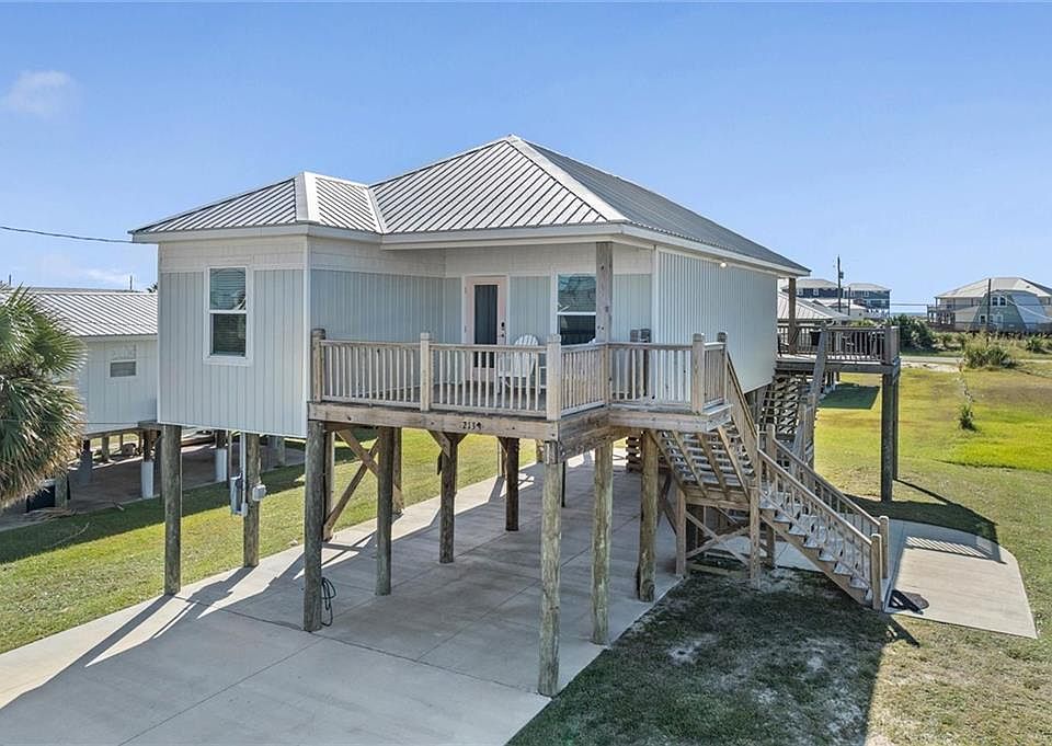 WELCOME to island living! This charming coastal cottage style home offers the perfect Dauphin Island retreat. Just minutes from the Gulf beaches, the ferry, fishing piers, and island shops, the location puts you right in the heart of it all. Built in 2021, this Gold Fortified coastal home offers the perfect blend of durability, style, and investment potential. Featuring 4 bedrooms and 2 bathrooms, the open layout showcases quartz countertops, modern finishes, and spacious living areas designed for entertaining. Currently an active vacation rental, this property offers an outstanding opportunity for both personal enjoyment and income generation. With its elevated design, Gold Fortified construction, and prime island location, this home embodies the very best of Dauphin Island living—whether you’re seeking a primary residence, second home, or proven investment property. Enjoy breathtaking views of both the Bay and the Gulf from the front and rear porches, or host gatherings in the shaded entertainment space underneath. With Dauphin Island's reputation as the "Sunset Capital of Alabama" this home positions you perfectly to take advantage of beautiful coastal views, laid-back living, and rental income potential. Don't miss the chance to own a slice of paradise! **Buyer and buyers agent deemed to verify all information is accurate and reliable**
