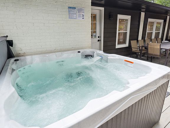 Private hot tubHot tubIsland seatingDedicated recreation spacePrivate backyard oasisOutdoor dining areaEn-suite bath